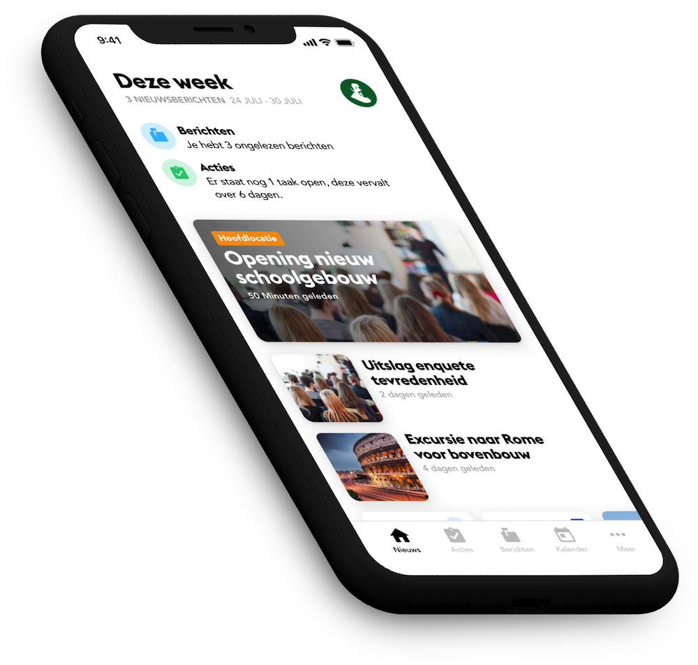 In de app kunt u berichten sturen, formulieren invullen en het nieuws op school bijhouden.