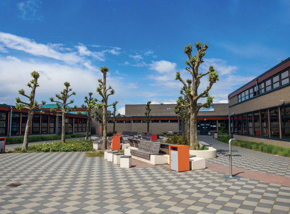 De school bestaat uit verschillende gebouwen op een groot terrein; daardoor voelt het Eckart een beetje als een dorp. Het centrale plein met gezellige bankjes en veel groen versterkt dat gevoel. Voor brugklassers